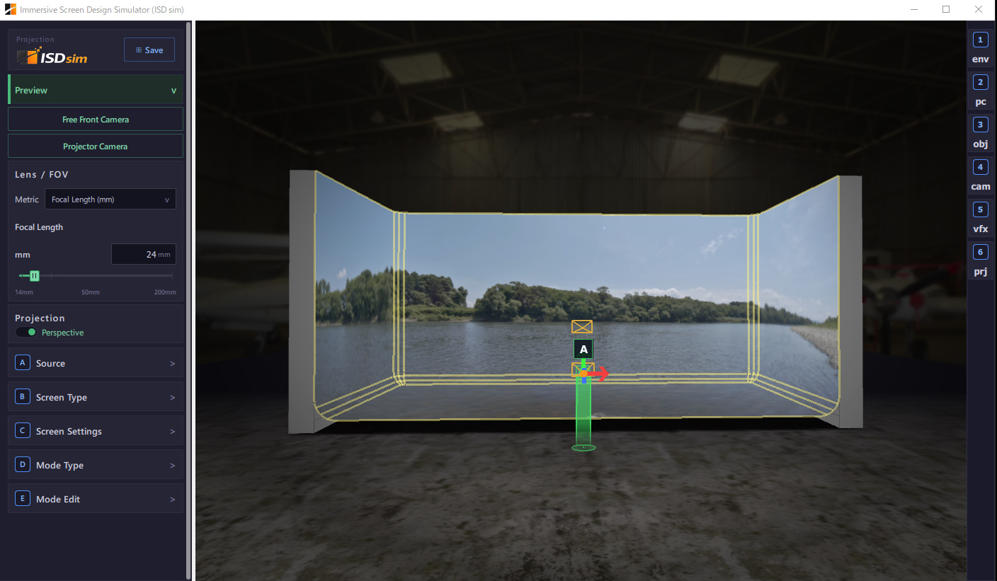 ISD sim はこうした課題を解決するため、没入型スクリーンへの映像表示をシミュレーションし仮想の視聴者目線から映像体験を確認できるようにしたツールです。これにより、前例の少ないスクリーン空間構成やイマーシブ映像演出においても、提案の精度向上と空間設計の具体化を支援します。